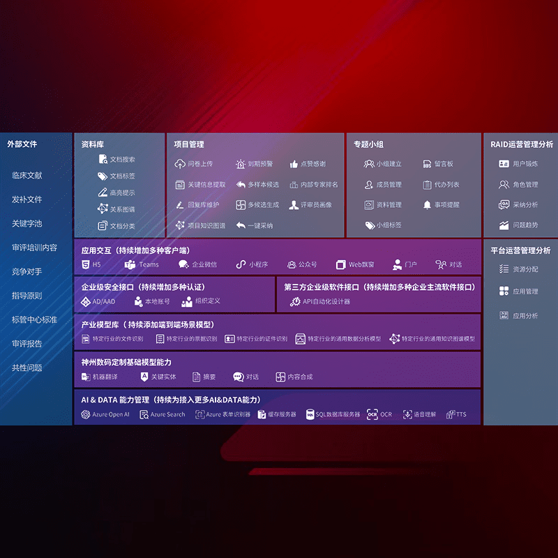 医疗器械产品上市前,,,,要熟悉严格与繁复评审标准,,,整理分析监管机构指导文件中的海量信息。。。。企业急需一个智能化解决方案,,,,提升知识管理效率,,,,提高评审通过率,,以提升其市场竞争力。。